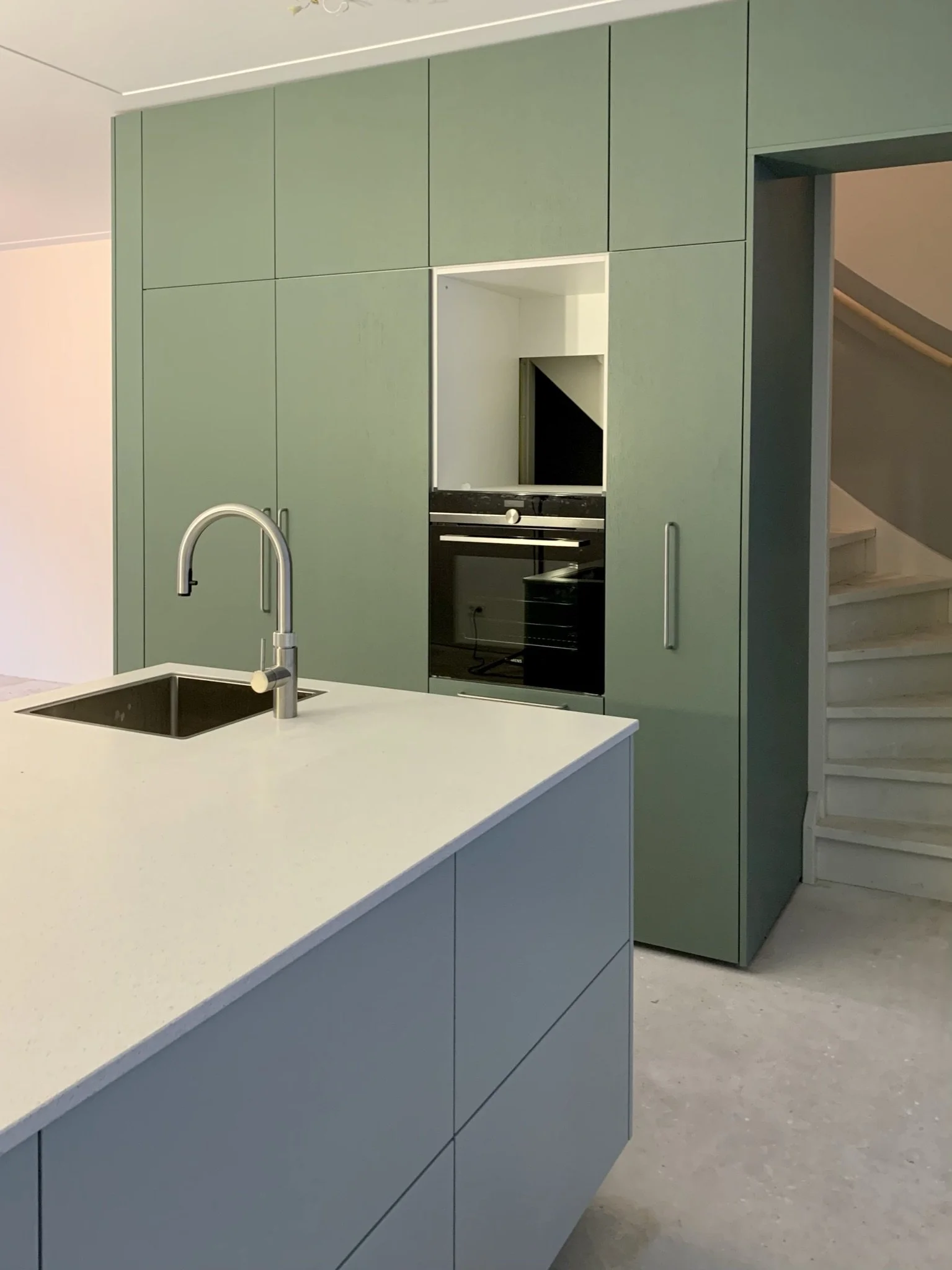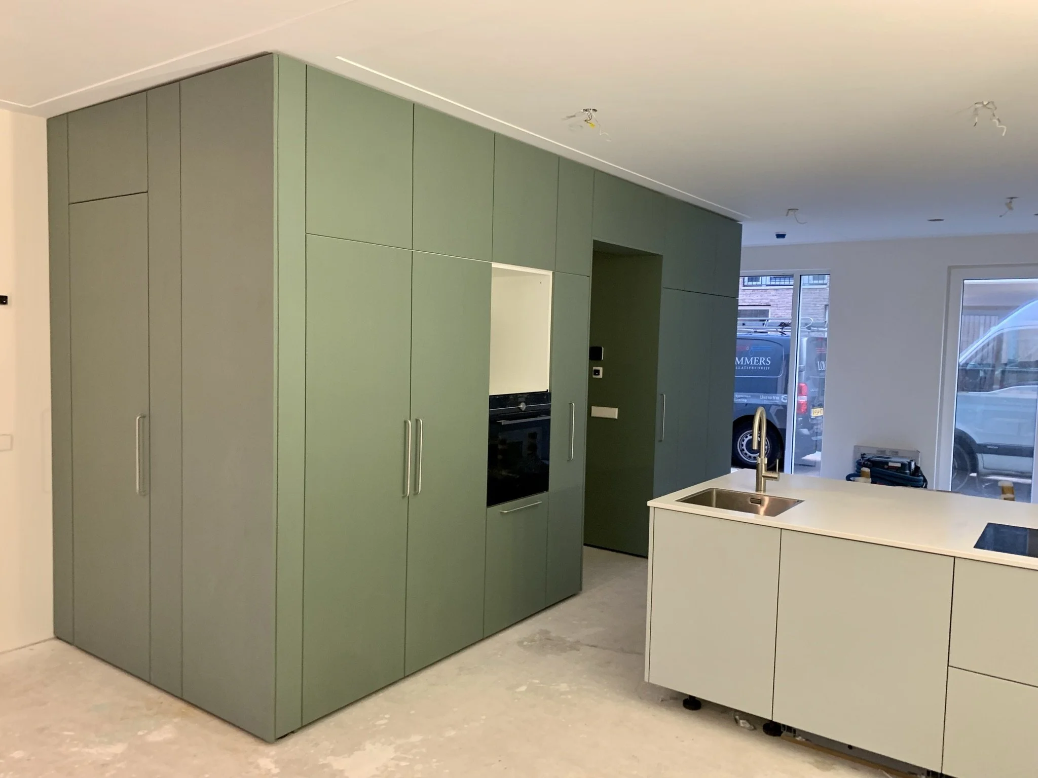 Moderne geïntegreerde keuken in groentinten